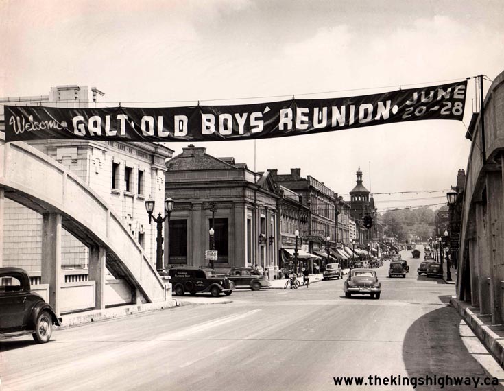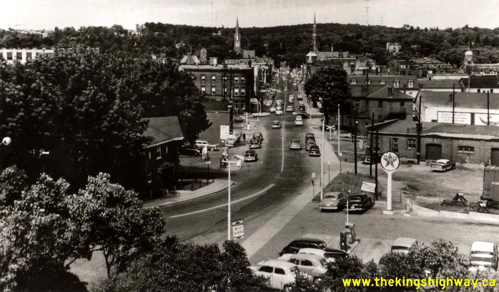 Above - Facing east from the Grand River Bridge towards the Junction of Hwy 97 and Hwy 24 in Downtown Galt. See an