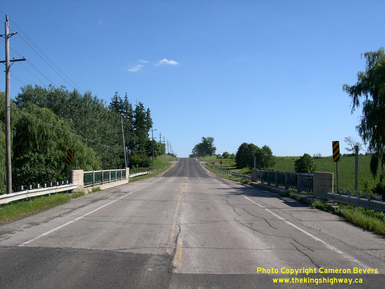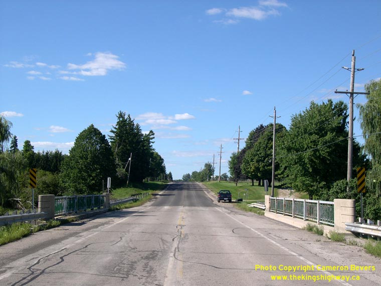 Enlarged Photo here. (Photograph taken on August 24, 2005 - © Cameron Bevers) Right - Facing north along former Hwy 97 at the Wilmot Creek Bridge south of Plattsville. See an Enlarged Photo here. (Photograph taken on August 24, 2005 - © Cameron Bevers)