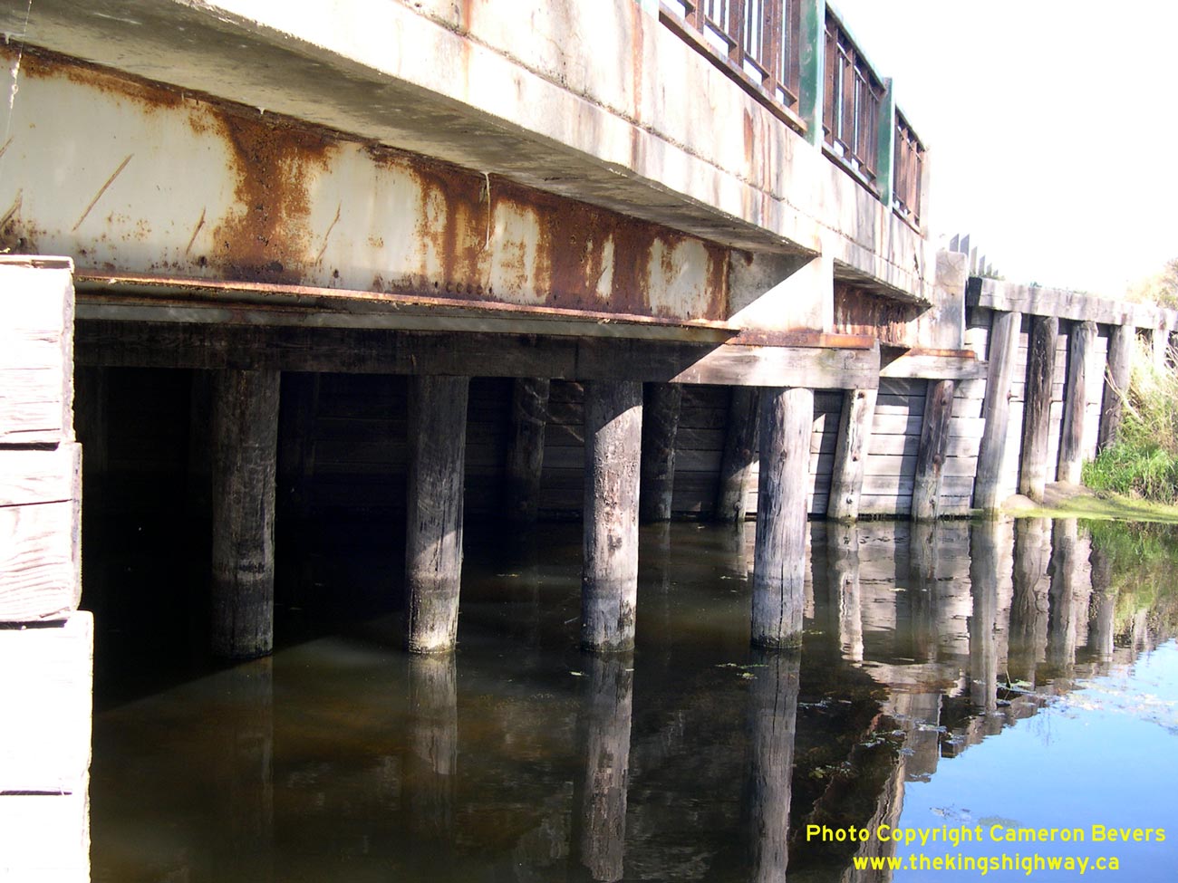 Left - The Holland Canal Bridge on Hwy 9 is a continuous concrete slab structure supported on timber bents. The bridge was rehabilitated in 2000. See an