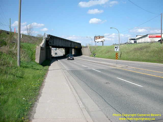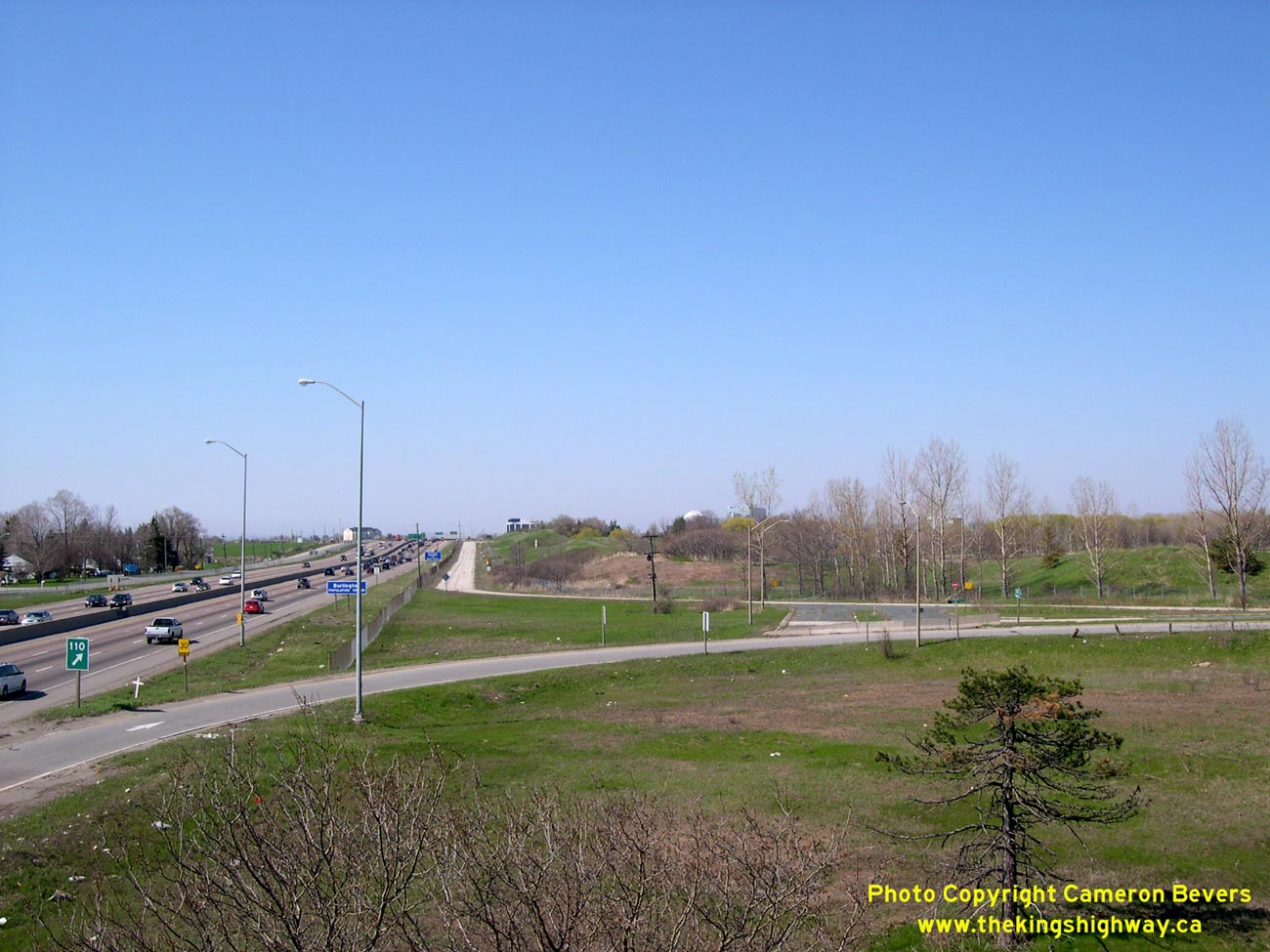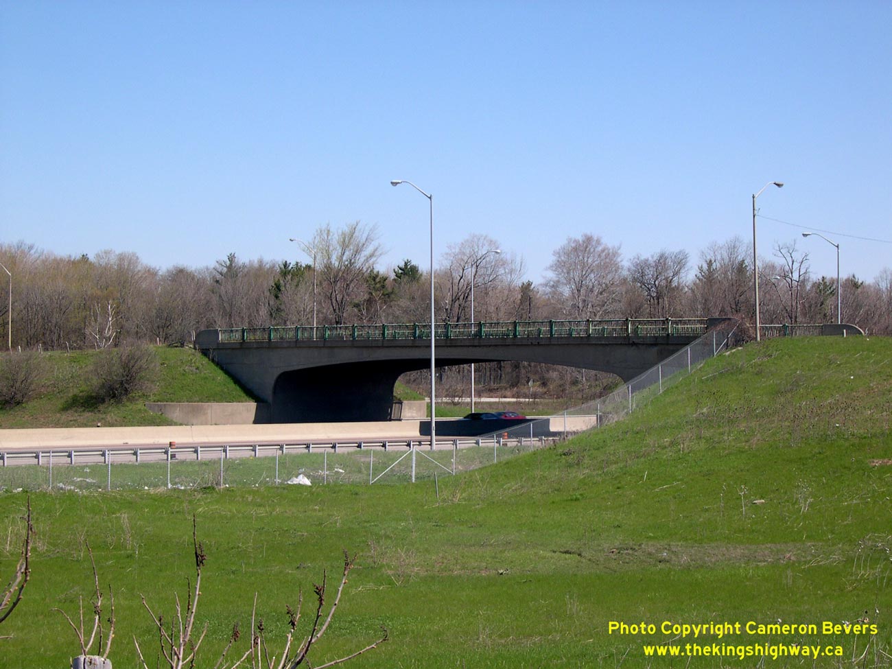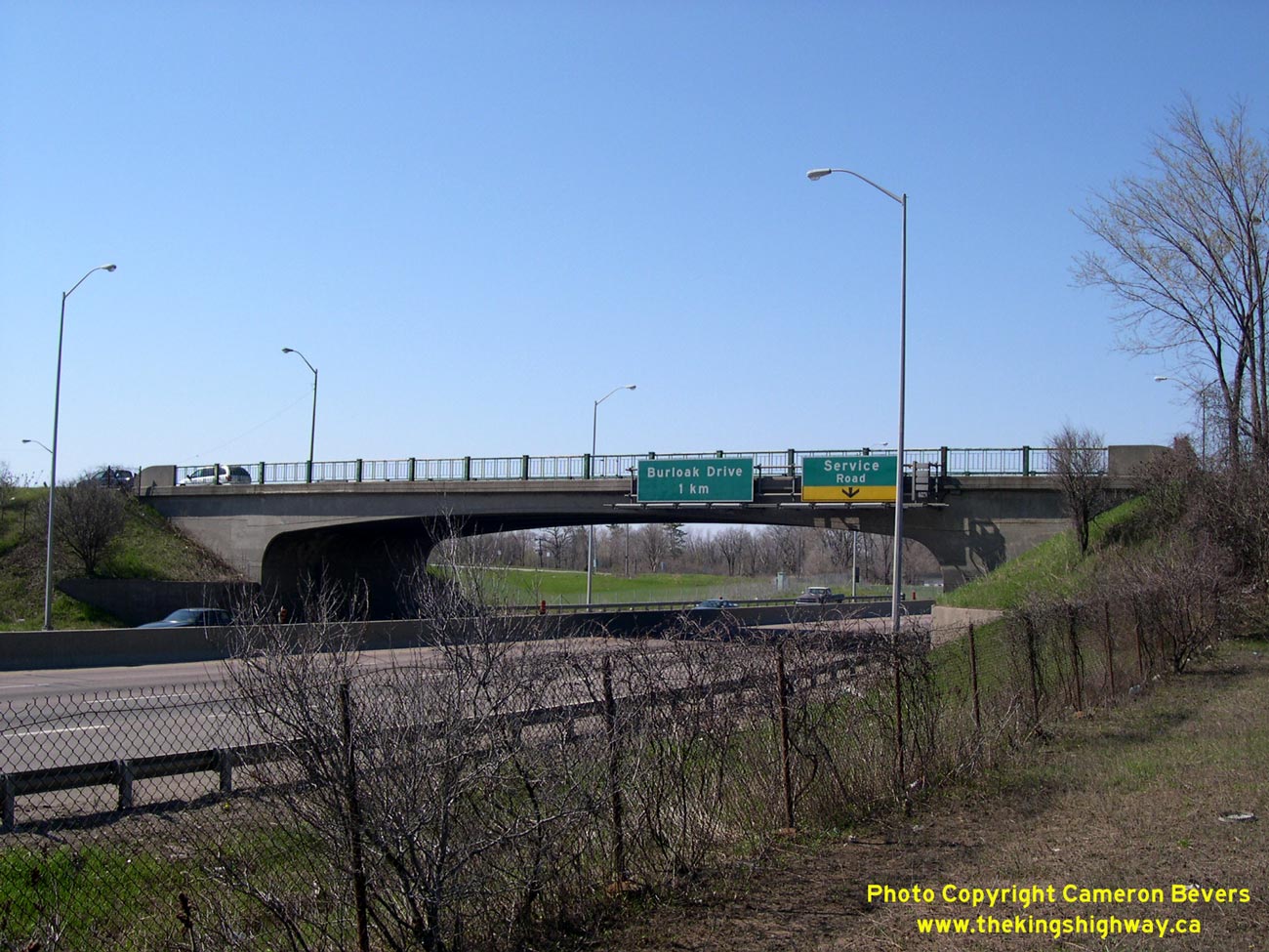 Left - The Bronte Service Road once had full interchange access to the Queen Elizabeth Way. After the Burloak Drive Interchange was completed in the early