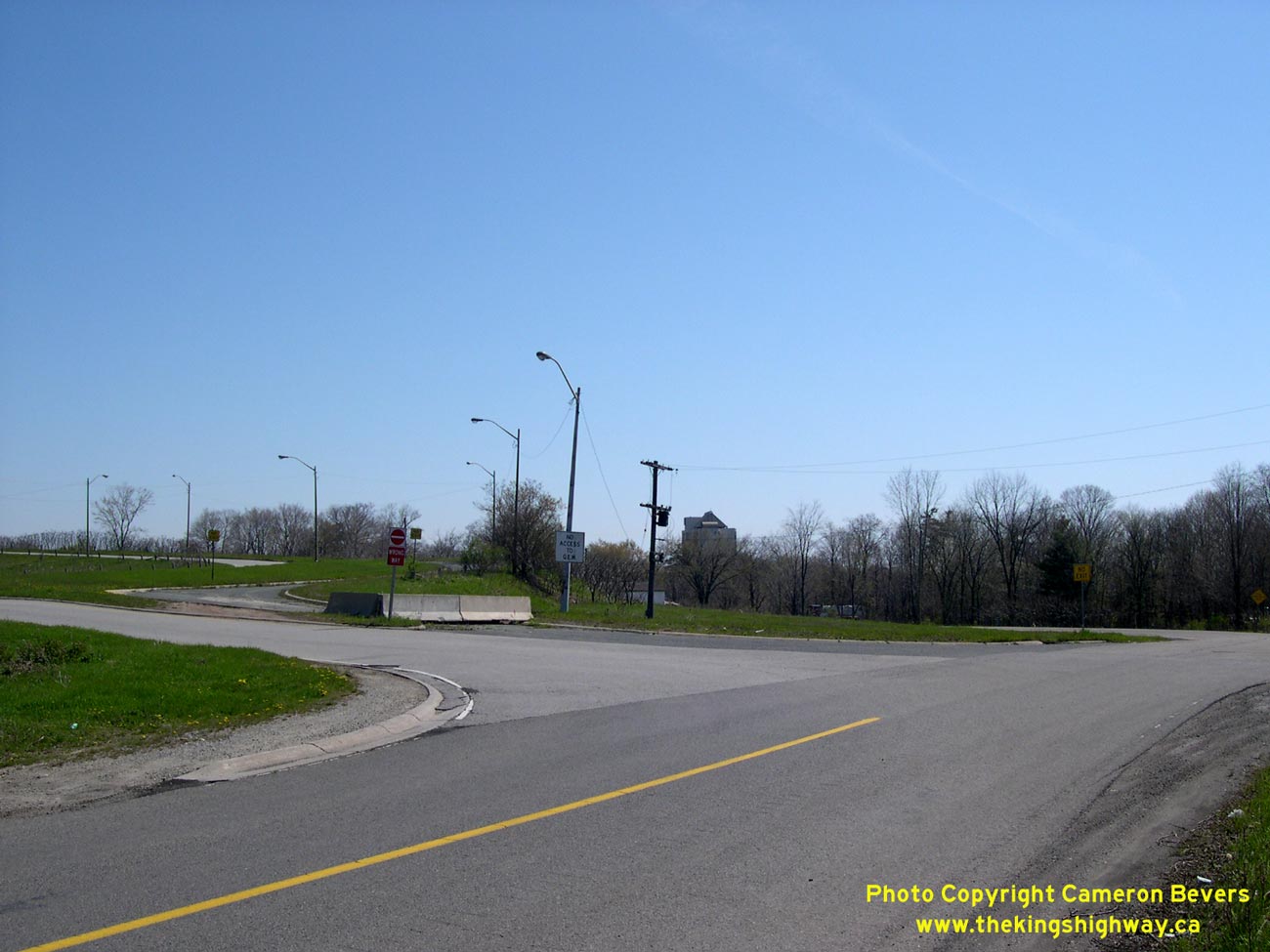 Left - Bronte Service Road facing east towards the Queen Elizabeth Way interchange. Note the closed on-ramp to the Hamilton-bound QEW at right. See an