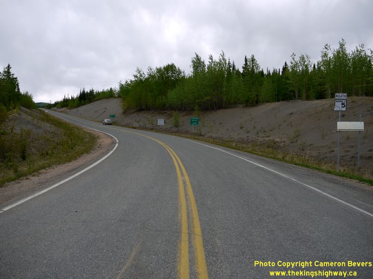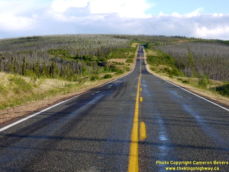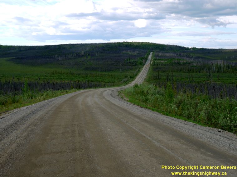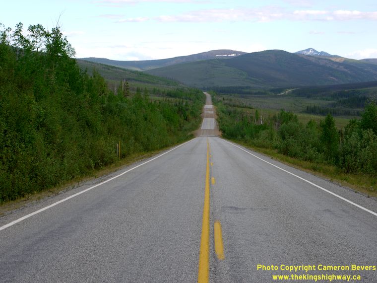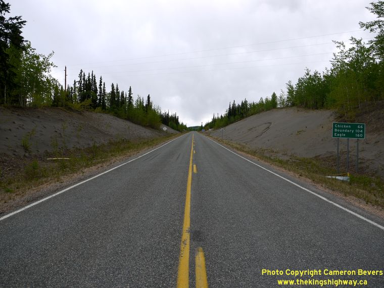 Left - Facing north along the Taylor Highway (Hwy 5) from the Alaska Highway (Hwy 2) Junction at Tetlin Junction. The Taylor Highway is not maintained in