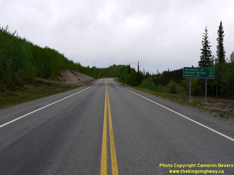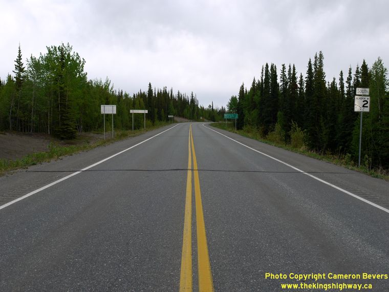 Left - Facing south along the Alaska Highway (Hwy 2) towards the Canadian Border from the Taylor Highway (Hwy 5) Junction at Tetlin Junction. See an