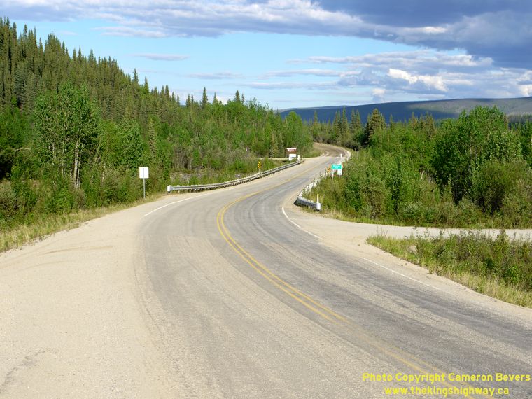 Left - Approaching Jack Wade Junction on the Northbound Taylor Highway (Hwy 5). Motorists can either follow the Taylor Highway north to Eagle or follow the
