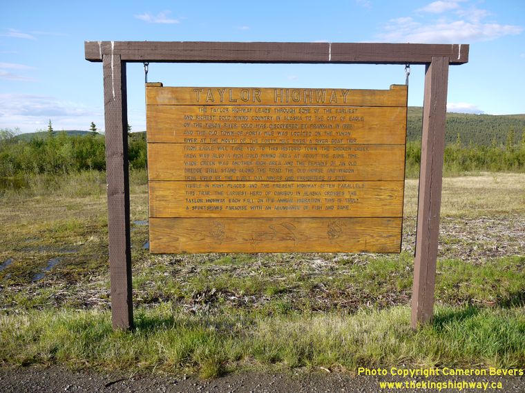 the Top of the World Highway. The Taylor Highway continues south via the right fork to Chicken and the Alaska Highway at Tetlin Junction. See an