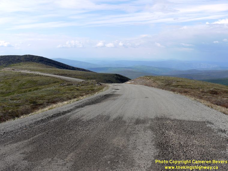 Alaska that is gravel-surfaced. See an Enlarged Photo Here. (Photograph taken on June 8, 2012 - © Cameron Bevers) Right - View from the Top of the World Highway from the scenic lookout at Poker Creek. See an Enlarged Photo Here. (Photograph taken on June 8, 2012 - © Cameron Bevers)