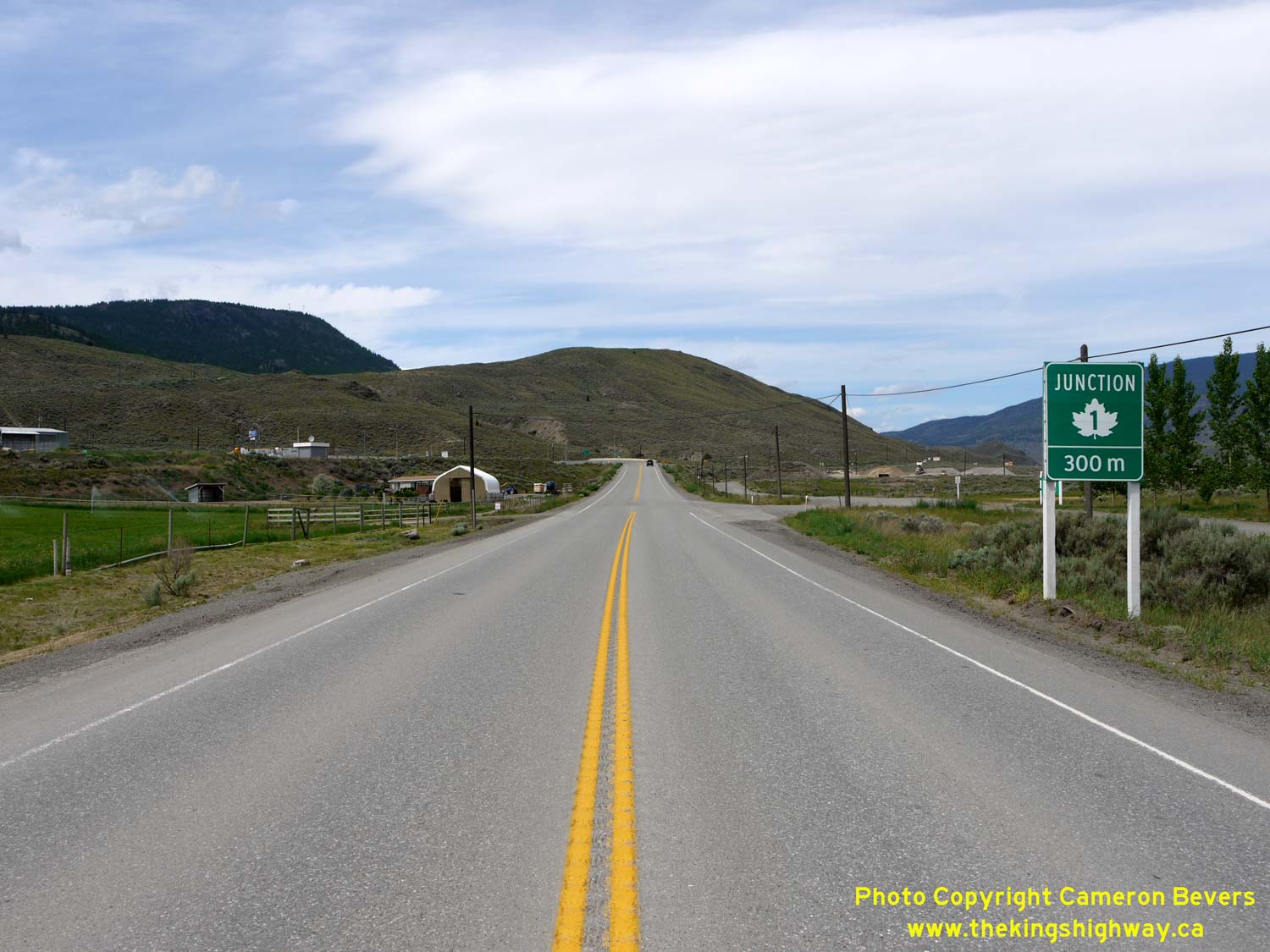 Left - Junction assembly on northbound Hwy 97C at the Hwy 1 Junction south of Cache Creek. At the intersection, Hwy 97C turns right and heads north into Cache