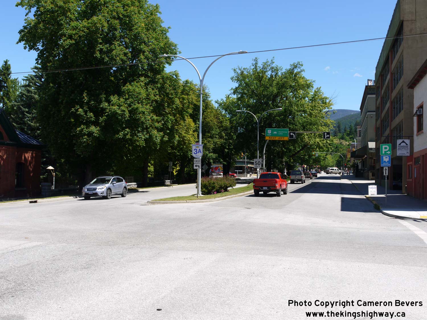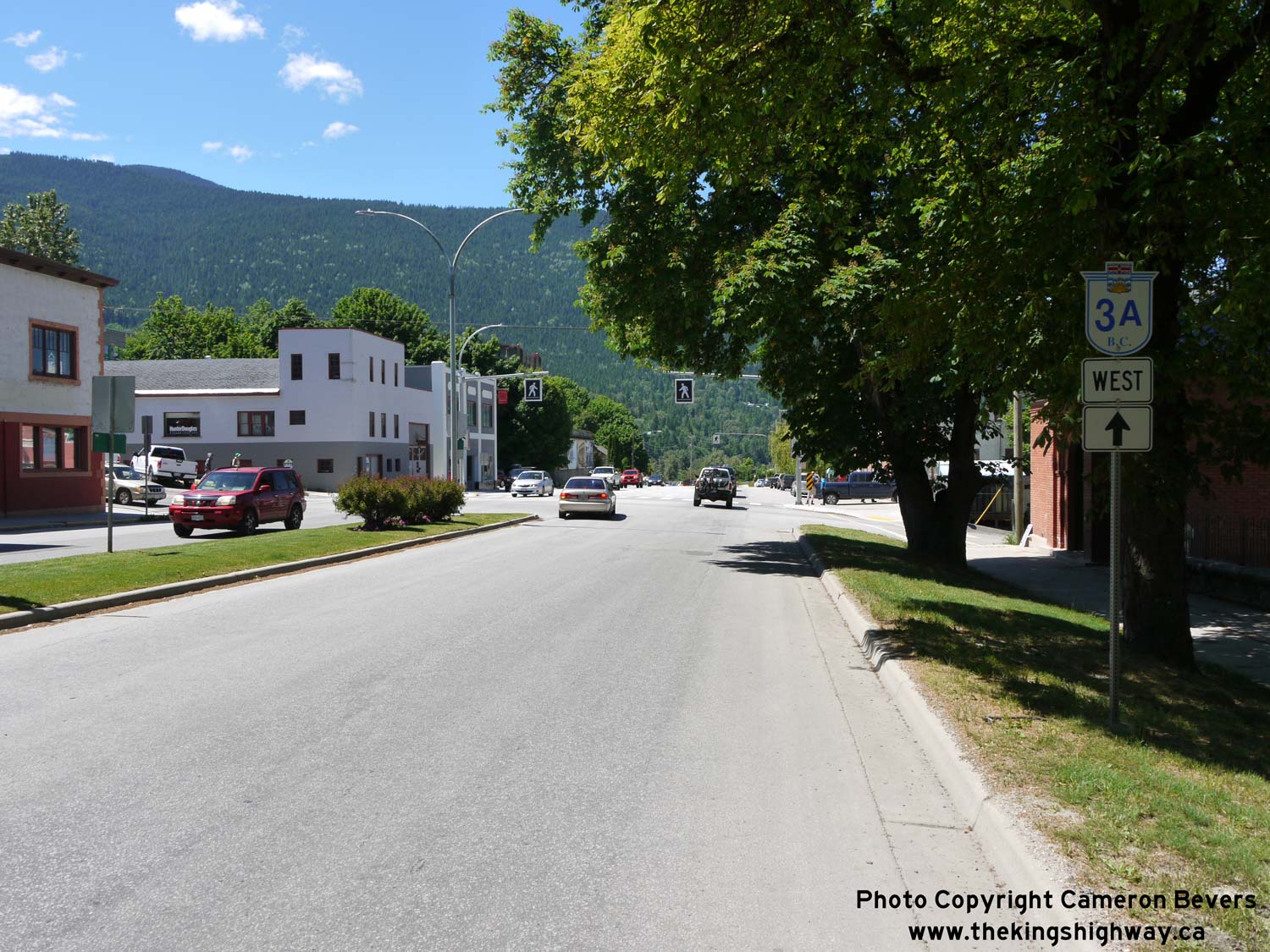 Enlarged Photo Here. (Photograph taken on June 12, 2017 - © Cameron Bevers) Right - Facing east along Anderson Street (Hwy 3A) approaching the turn onto Nelson Avenue. See an Enlarged Photo Here. (Photograph taken on June 12, 2017 - © Cameron Bevers)
