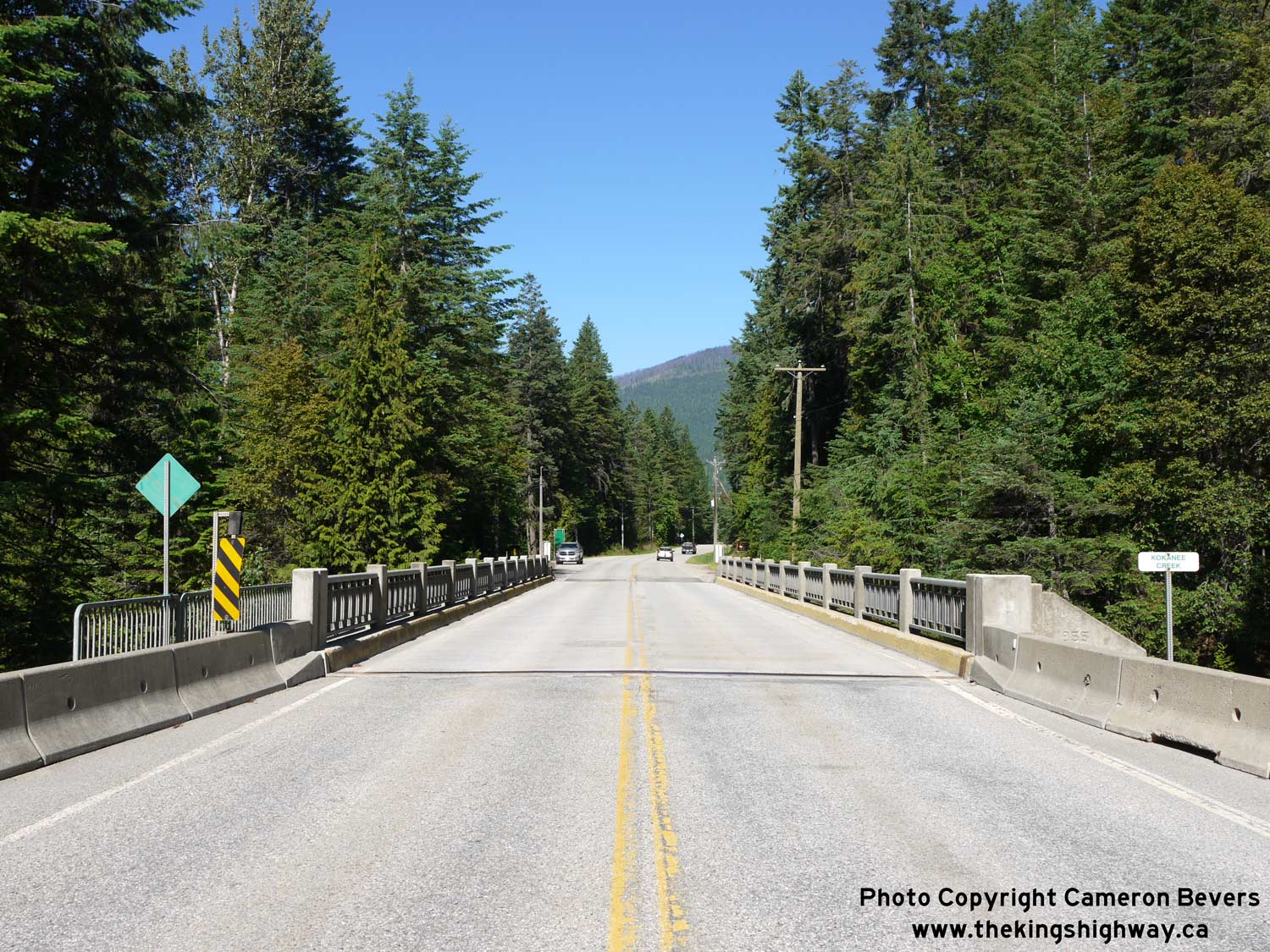 Left - Facing west along Hwy 3A at the Kokanee Creek Bridge west of Balfour. See an