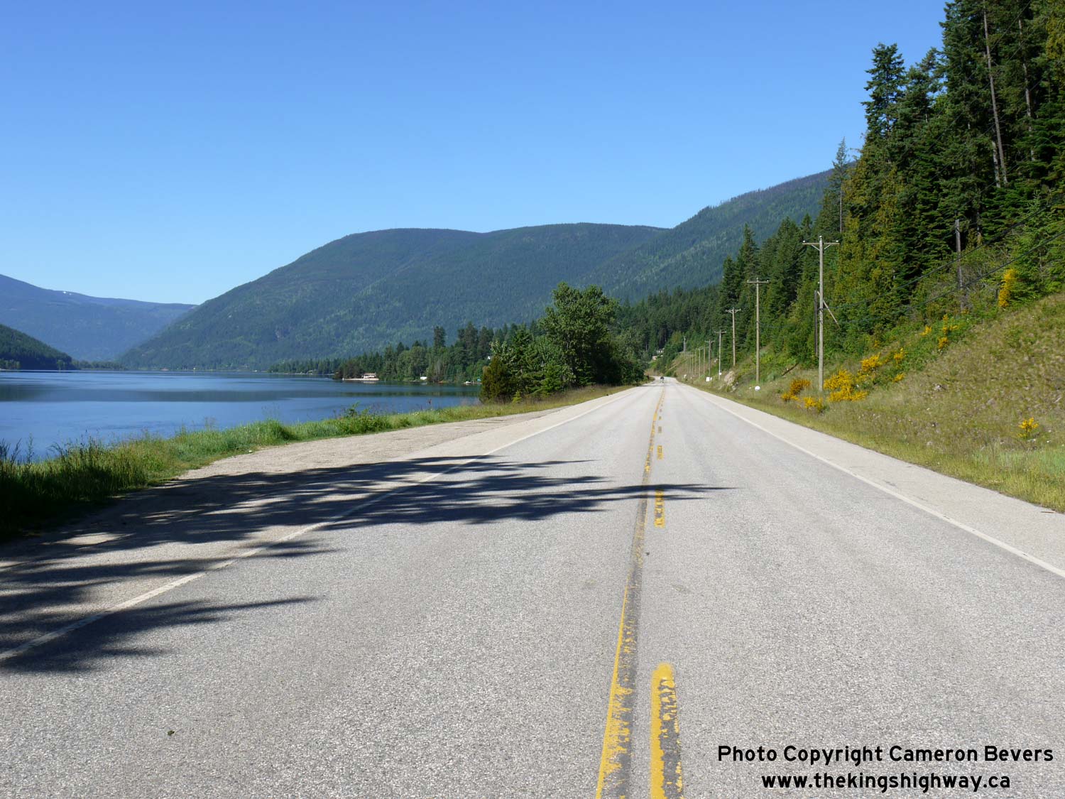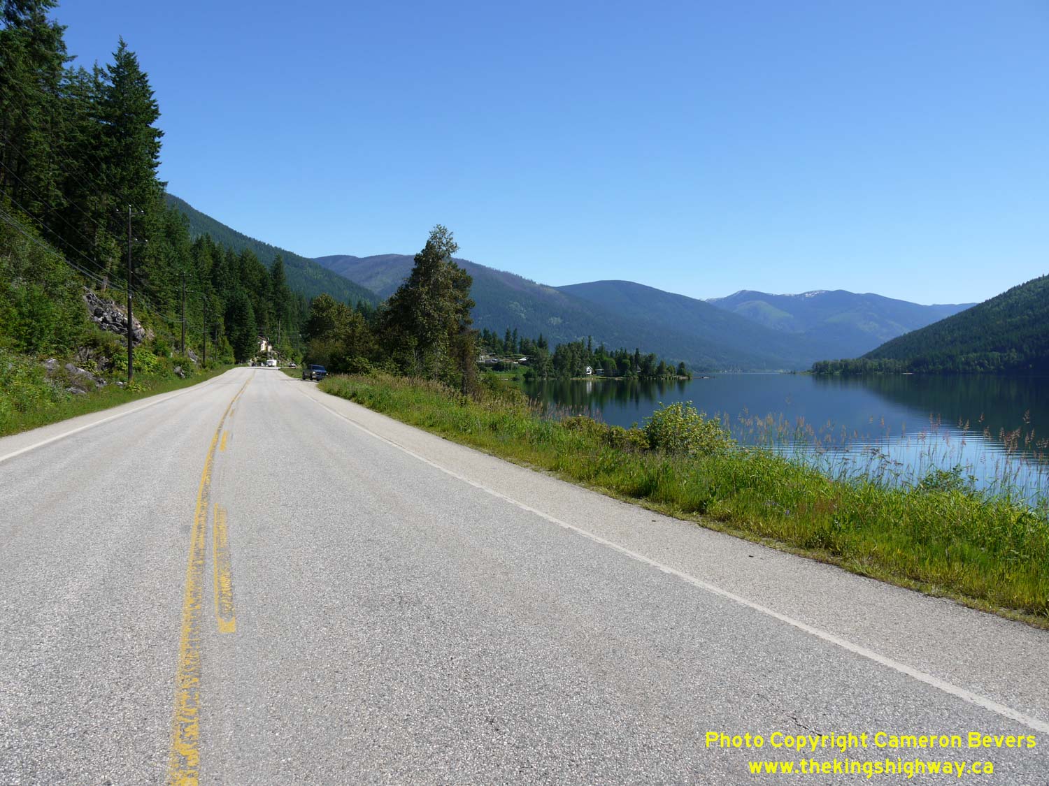 Left - View of Hwy 3A near Willow Point, about 20 km west of Balfour. See an