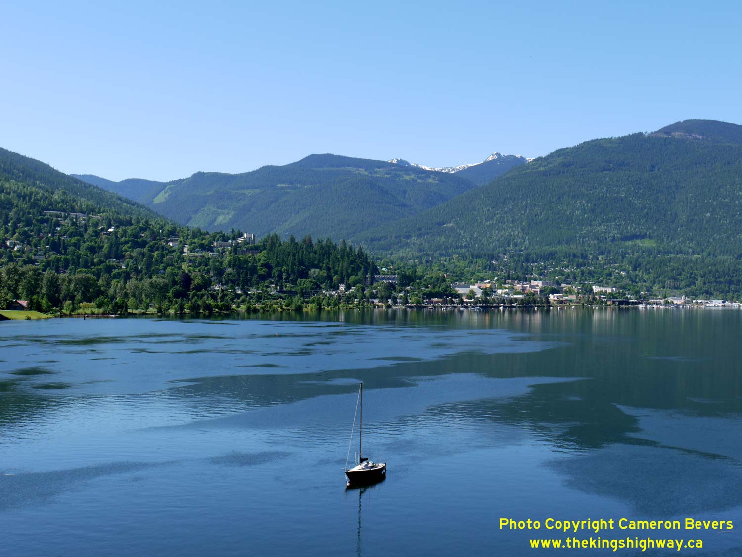 Enlarged Photo Here. (Photograph taken on June 12, 2017 - © Cameron Bevers) Right - View of Nelson from Hwy 3A across Kootenay Lake. This small mountainside city is also one of British Columbia's most picturesque. With tree-lined avenues, historical downtown buildings and located in an unforgettable setting where the mountains meet the waterfront, Nelson is a must-see for anyone travelling to the BC Interior. See an Enlarged Photo Here. (Photograph taken on June 12, 2017 - © Cameron Bevers)