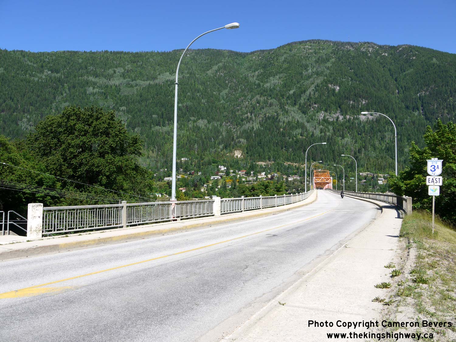 Left - Facing east along Hwy 3A across the Nelson Bridge. When the Nelson Bridge first opened to traffic in 1957, it was a toll bridge. Toll collection on the