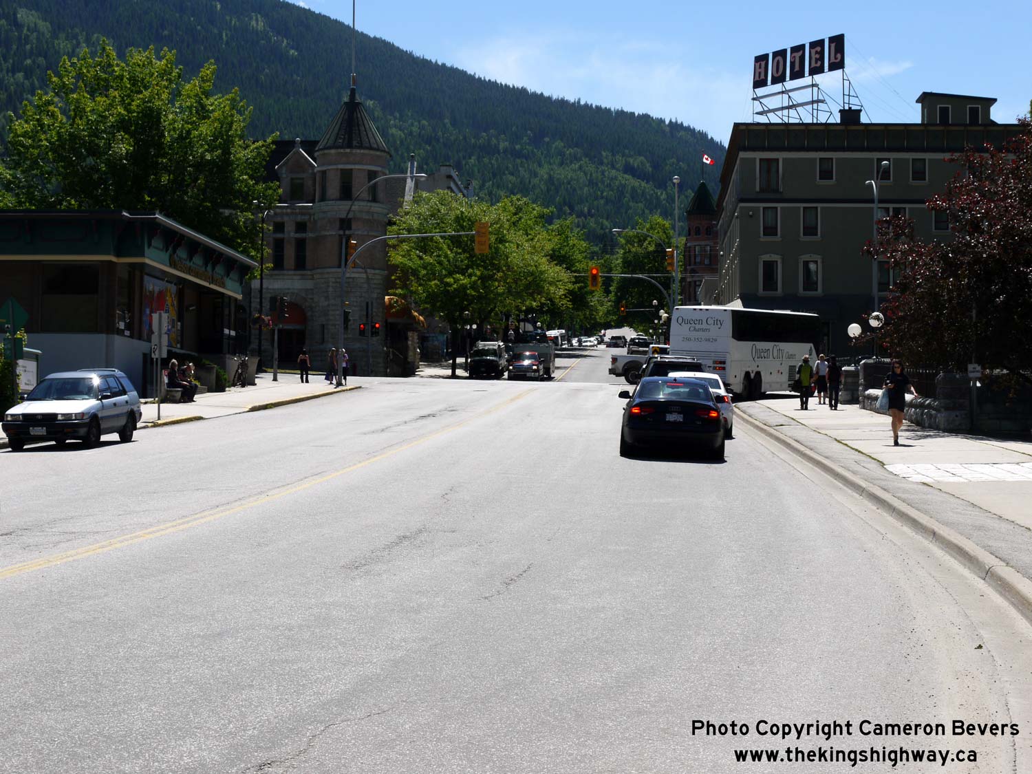 Left - Hwy 3A (Vernon Street) in Downtown Nelson, facing east from Stanley Street. See an