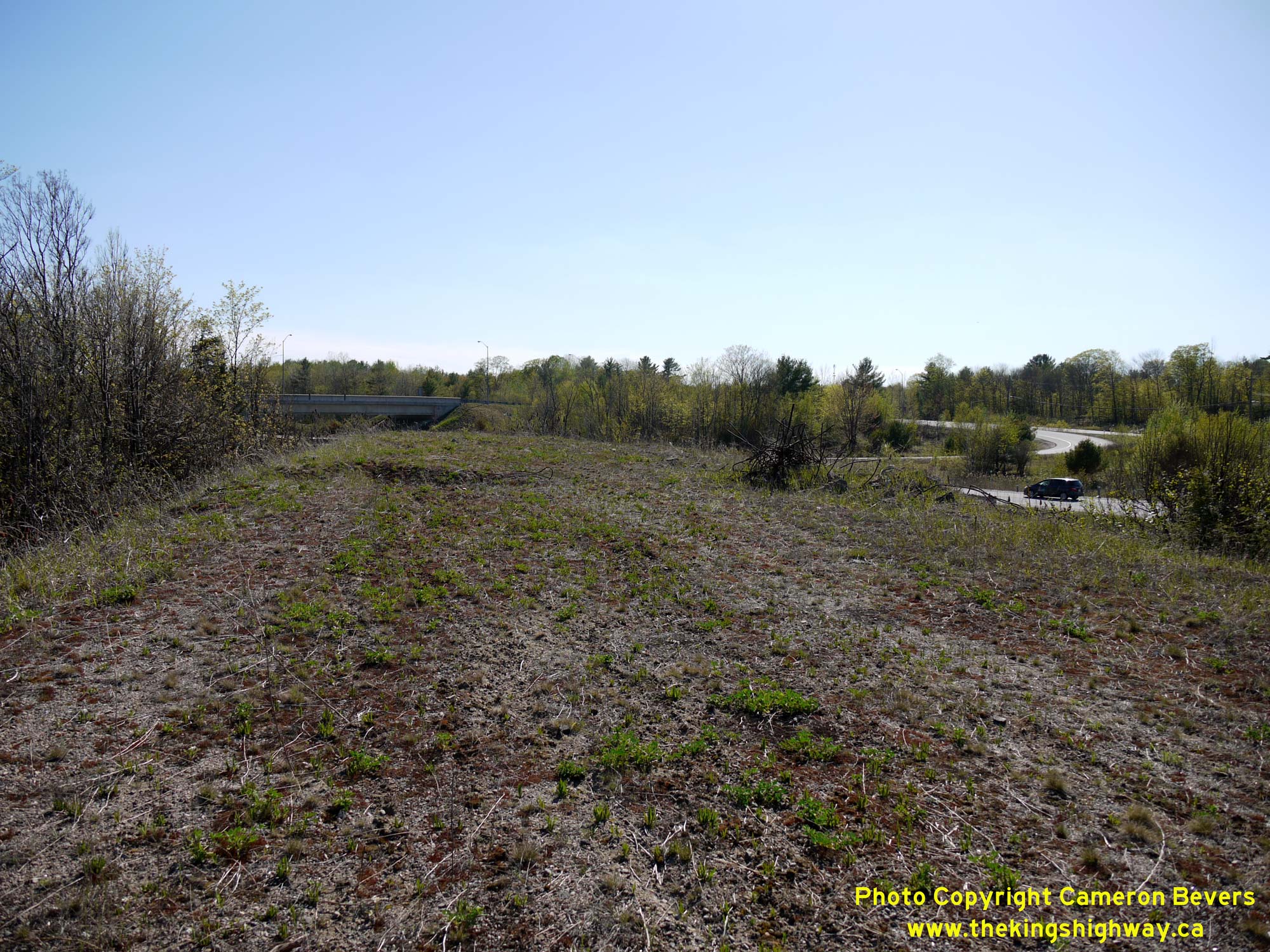 ![]() Left - Facing northeast towards the former site of the old northbound Hwy 11 flyover which was demolished in the late 1990s. This single-lane ramp connected