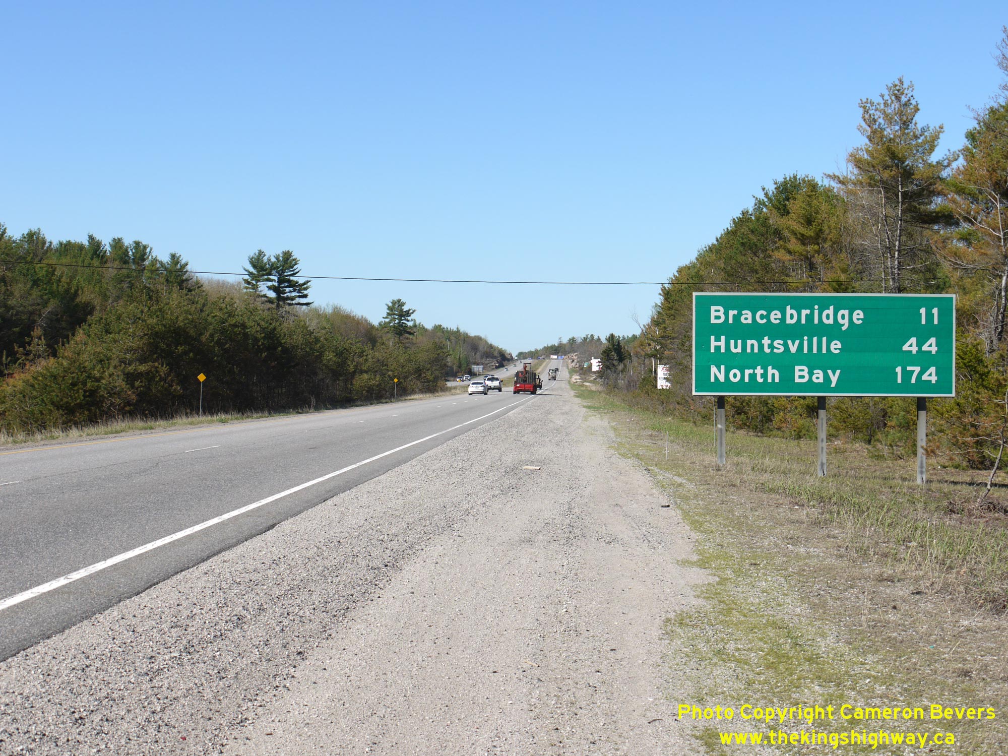 Enlarged Photo Here. (Photograph taken on September 19, 2003 - © Cameron Bevers) Right - Facing north along Hwy 11 towards Huntsville from the intersection with Stevenson Road 1. See an Enlarged Photo Here. (Photograph taken on June 17, 2006 - © Cameron Bevers)
