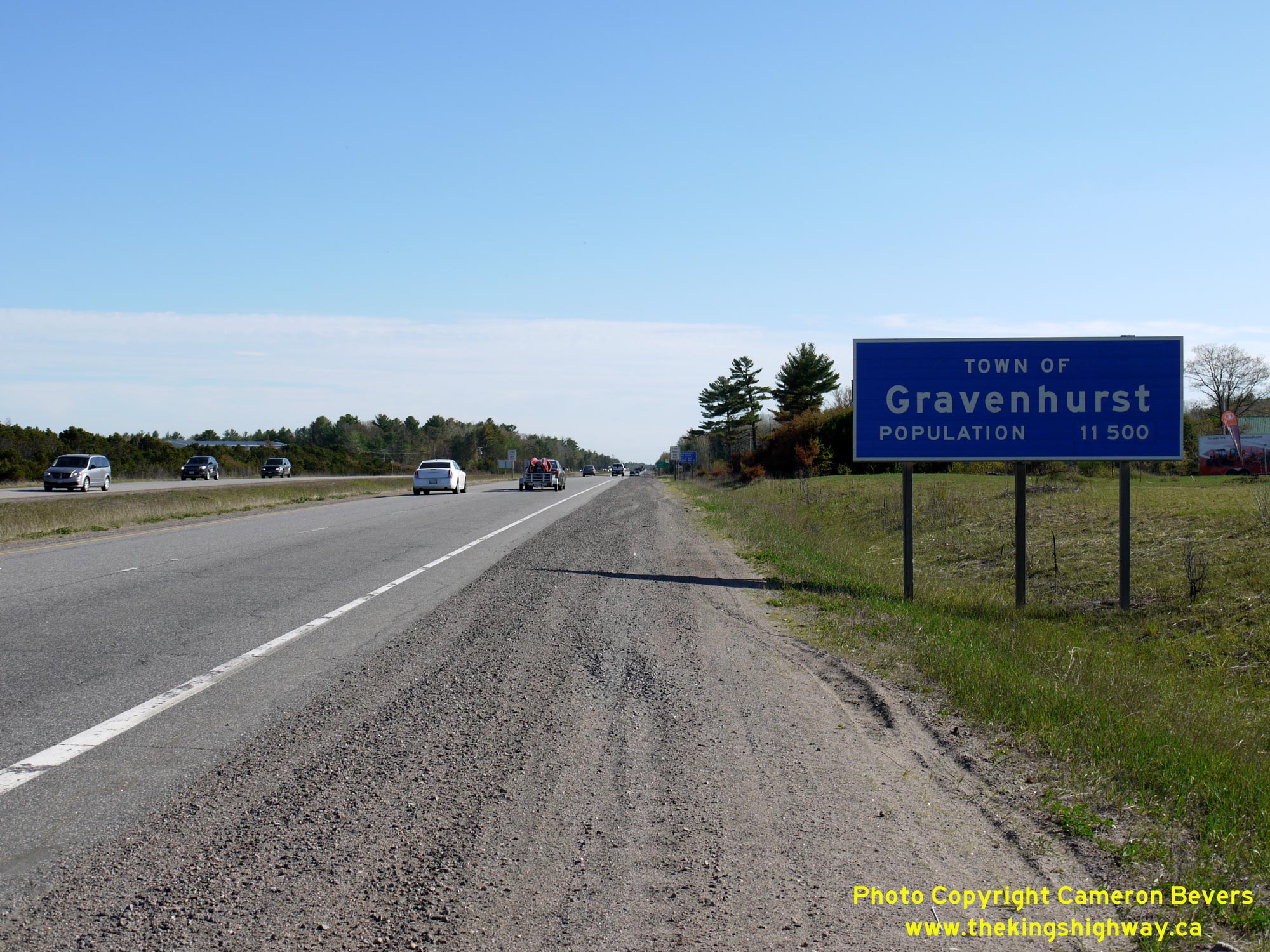 ![]() Left - Facing south along the Gravenhurst Bypass (Hwy 11) from the Bethune Drive Overpass at the north entrance to Gravenhurst. During 2019, an average of