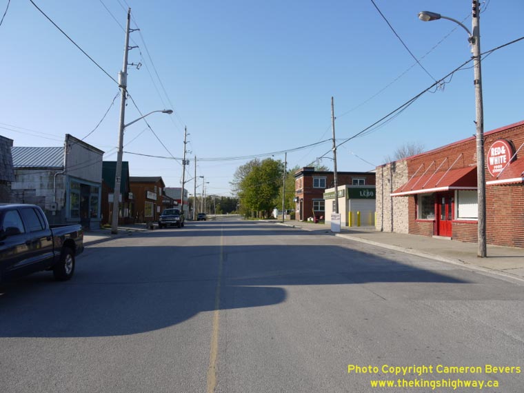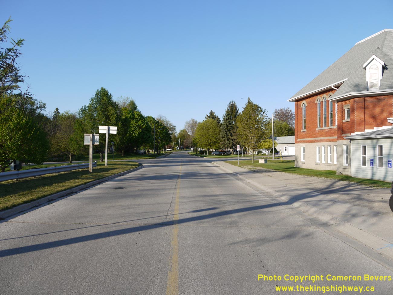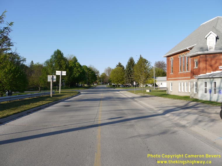Left - Robinson Street (Hwy 19) in Port Burwell, facing north towards Erieus Street. See an