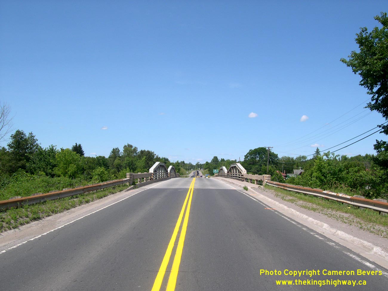 Left - Facing north towards the Old Youngs Point Bridge along the former Hwy 28 alignment. The Old Youngs Point Bridge was constructed by the Dominion Bridge
