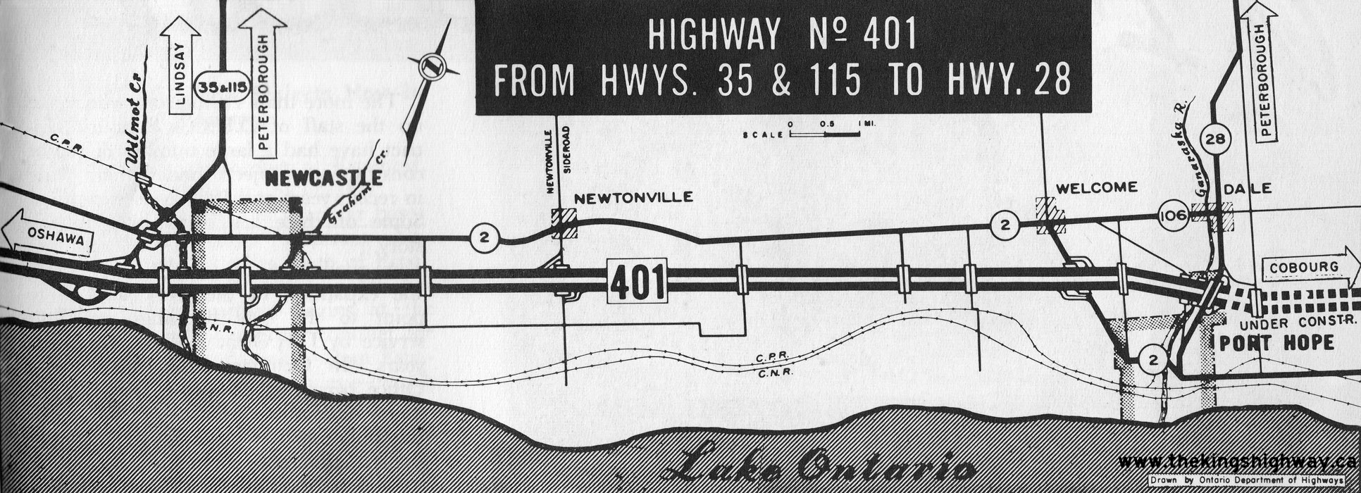 Above - Plan from 1961 which illustrates a new section of Hwy 401 being opened to traffic between the Hwy 28 Interchange in Port Hope and the Hwy 30