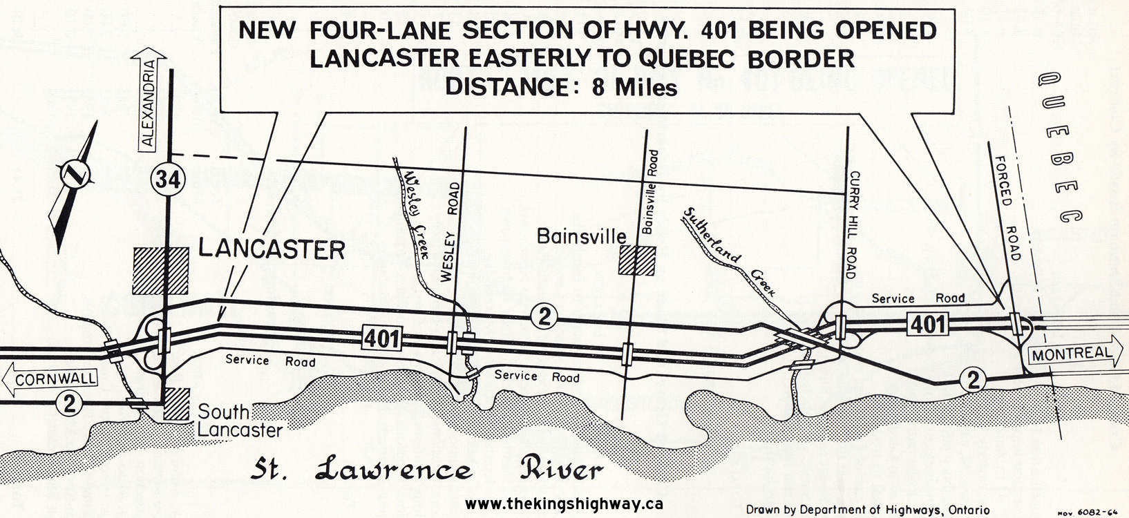 Lancaster on September 11, 1962. In conjunction with Tollgate Road across the northern edge of Cornwall, this new section of Hwy 401 allowed through traffic on Hwy 2